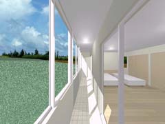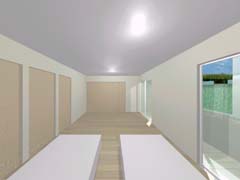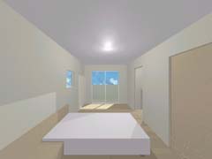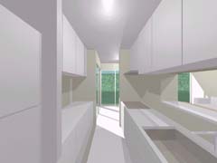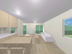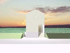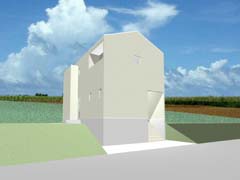 | 計画地 :石川県金沢市 | 雪の多い地方における建売住宅の計画。サンルームがあると大変喜ばれる場所柄とのこと。北側の道路面より敷地地盤は1.4mほど高く、南側にはさらに高く「裏山」が近接していてあまり多くの日照は望めなさそうである。100平米そこそこの敷地に3LDKという一般的な要件であり、建物の計画自体も非常に単純明解なものとしているが、陽だまりとなる場所を設け、外観をシンプルかつ抽象的なものとして差別化を図っている。 |