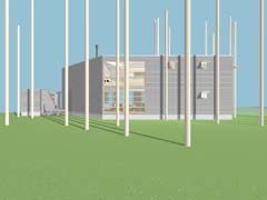 | 計画地 :長野県軽井沢町 | 敷地は森そのものである。何物にも邪魔されないパノラミックな森の景観を得ることも可能だけれども、建屋自体によってある程度風景を切り取ることで窓越しの景観が単調にならないようにしている。日中の大半を過ごすことになるデッキを中心に大きく構え、その廻りを諸室でゆるく囲い込んでいる。建屋をうまい具合に折り曲げることで、既存の樹木を残しながら隣家の視線を断ち切り、心地よい空間を形成している。 |