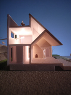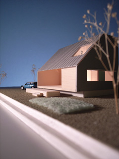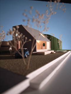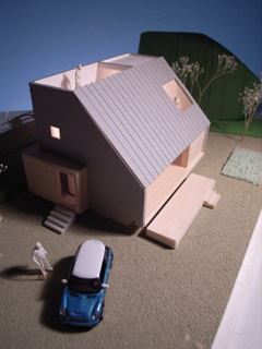 | 計画地 :神奈川県鎌倉市 | 旧鎌倉の奥深い敷地。里山に取り囲まれる市街化調整区域における借地の建替計画。敷地は十分広いが、ローコストとするために建物は極力コンパクトなものに抑え将来の増築の余地を残していて、内装はセルフビルドにて行って頂く予定としている。また周辺の山からの伏流水があふれ出すほどの湿気の多い土地であるため、1階床は高床としている。 |