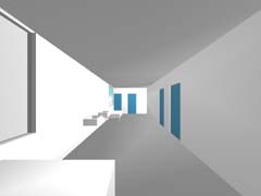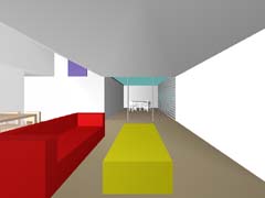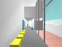 | 計画地 :静岡県下田市 | 下田駅にほど近い住居併用の診療所計画である。1階を診療所、2,3階を医師の住宅と明確に分離し、外観上においても異なる素材の2つのマスがそのままクロスオーバーした形態を表している。2つの機能間のプライバシーを確保しながらも内部の吹抜や外部空間を随所に挟みこむことによって閉鎖的な空間と開放的な空間が交互にたち表れる変化にとんだシークエンスを産み出している。診療所は敷地の奥行きを活かした平面形として、待合ホールの奥部においては2層吹抜のガラス面越しに囲まれたパティオと対峙させ、待合空間の快適化を図っている。住居部は2〜3階吹抜を通してほぼワンルーム化された居住空間であり、広くプライベートなルーフテラス及び南面のハイサイドライトによって街の雑踏から逃れつつ温暖なこの地域での生活を楽しめるように配慮している。 |